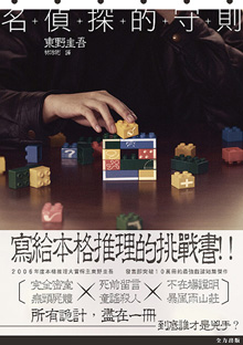 這次去書展只買了兩本書﹐第一本是陳雲的《中文解毒》﹐第二本便是《名偵探的守則》。第一本在未入場前已打算購買﹐第二本則是臨離場﹐看見自己只買了一本書﹐覺得蝕了入場費﹐便隨手看看還有什麼書可以買。我看東野圭吾的《偵探伽俐略》時﹐書中導讀介紹過這本書﹐說是顛覆本格推理小說之作。推介寫得很文藝很高深﹐還以為是什麼驚天動地的創新推理小說﹐﹐說穿了原來只是惡搞公式推理橋段的搞笑作品﹐差落太大有點失望。
