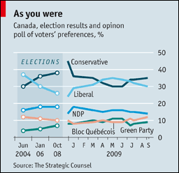 THE members of Canada’s Parliament returned from their summer break this month braced for a fourth general election in just over five years. Michael Ignatieff, who heads the Liberal Party, the main opposition, vowed to bring down the minority government of Stephen Harper, the Conservative prime minister, at the earliest opportunity.