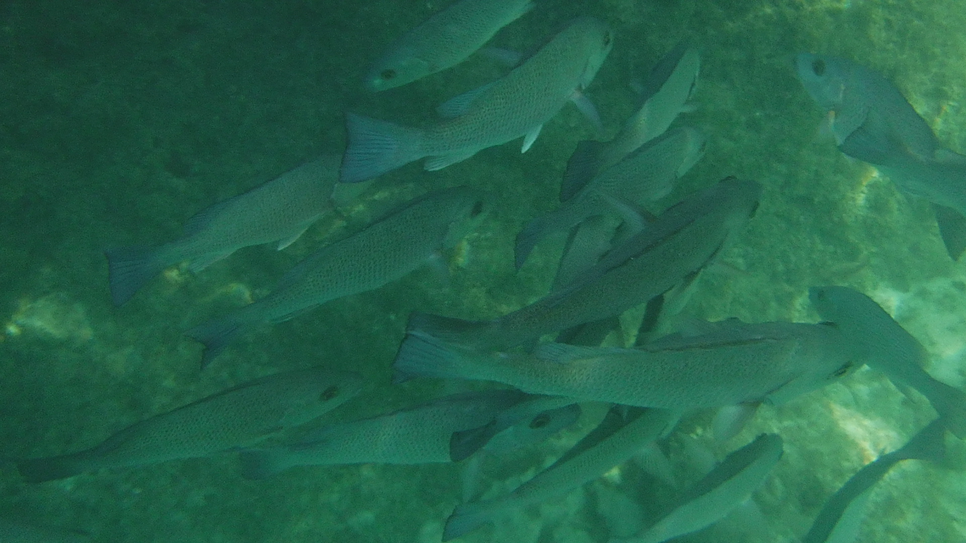 除了綜合大樓的儲物櫃外,海灣四週設有數個有下水點,有儲物櫃可以存放衣物,拿取蛙鞋和浮潛用品,而救生衣則一列列掛在岸邊,自已拿一件穿上便可以下水。為了今次旅行,我特地借了防水相機,可以拍攝水中的生態。這是我第二次浮潛,上次在夏威夷的Hanuma Bay,與那次的經驗比較,這兒多很多魚。魚多數集在中淺水有陽光的地方,海灣中央有一個小島,島的四周都是珊瑚焦,藏有很多魚。在海灣中泳來泳去,四處尋找多魚的水域,圍繞海灣游一圈也要半個小時。
