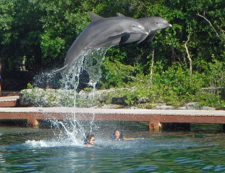 浮潛是免費,連同水上樂園,足夠你玩一整天。不過若果你想額外花費,也有一些好玩特別的活動。我老婆玩了與海豚同游,三個人同兩條海豚玩足一小時,盛惠一百四十美元,抵到爛。上次去夏威夷和海豚玩,差不多的價錢,只是站在水中摸摸海豚拍個照。這次不單只海豚任摸,還會和你玩雜耍,從你頭頂凌空跳過,用鼻子推起你雙腳,做水上飛人。不過除了入場費外,事後少不免要買照片影片,又給他們多賺一筆。在墨西哥買野記得要講價,照片影片全套原價一百八十,講價後一百二十成交。其他的付費活動有:偽潛水,不用自已背氧氣筒,氧氣由水面的輸氣管供應,可以深入水中近距離看魚,或岩洞中潛水。水底漫步,帶著一個有氧氣供應的頭盔,在水中沿路看魚。若懂得潛水,會覺得這兩個活動有點低能,不過勝在不用考牌,又可以體驗一下潛水的滋味。除了與海豚同游,還有與海牛游,與魔鬼魚同游,海豚的價錢最貴。不知何解,Xel-Ha明明標榜自己的自然生態公園,竟然有坐快艇出海玩刺激三百六十度旋轉衝浪,與靜態的水上活動格格不入。樂園五時半開始天黑便關門,然後坐車回酒店吃晚飯。