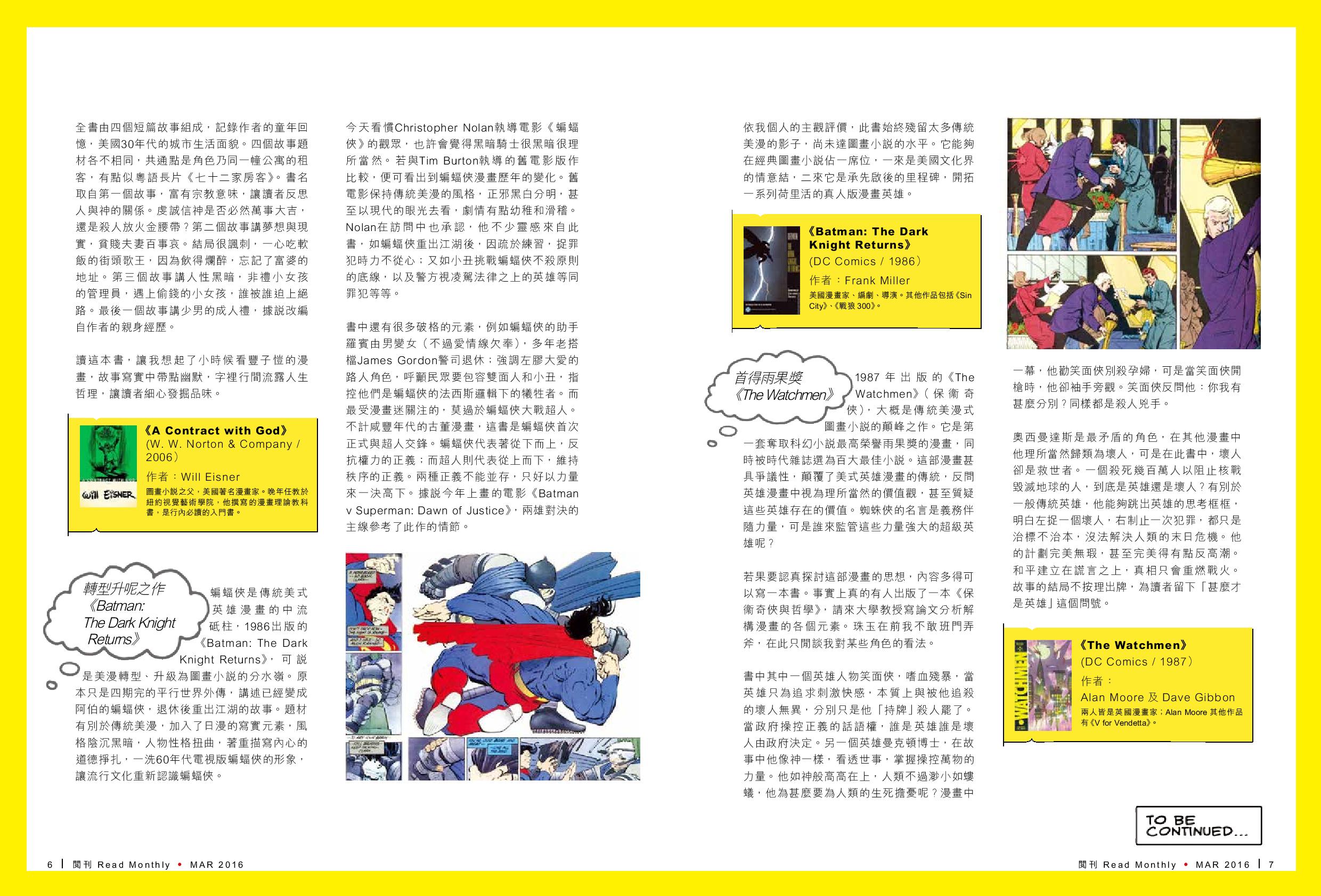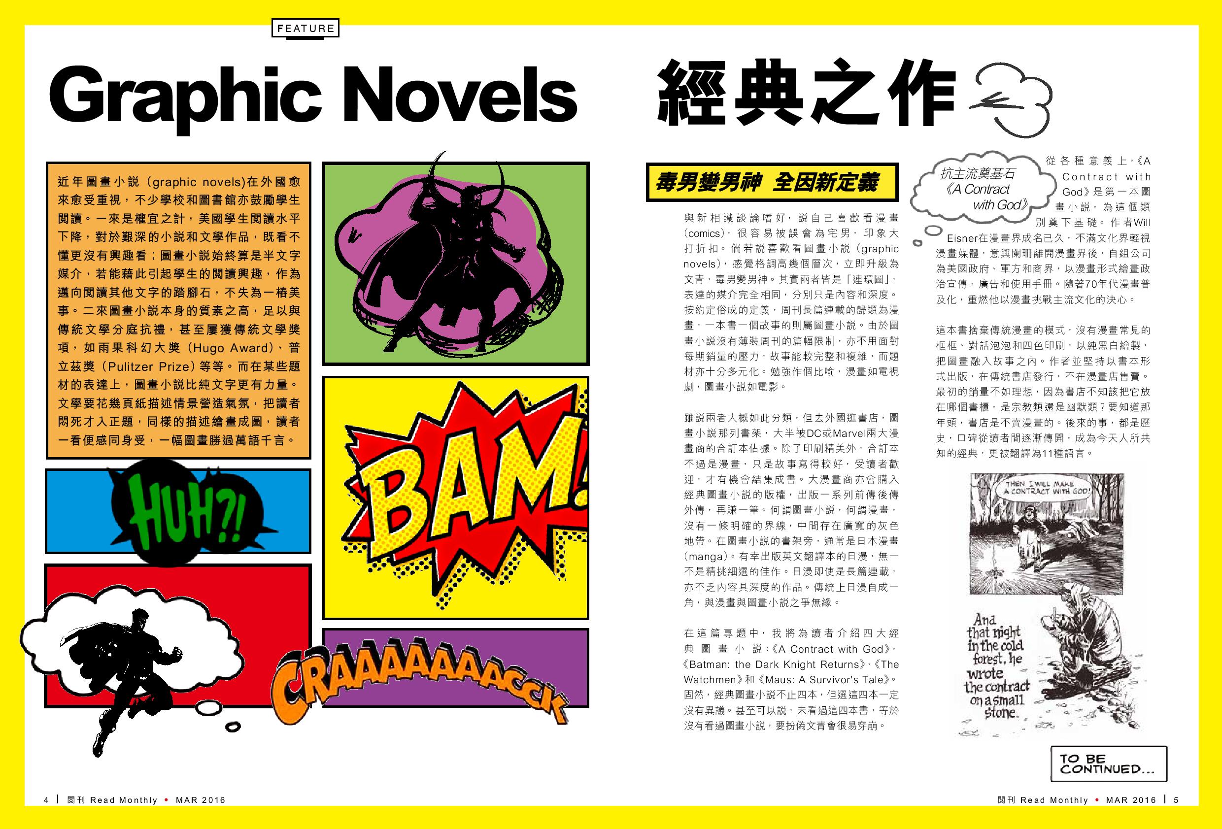 在這篇專題中,我將為讀者介紹四大經典圖畫小說:《A Contract with God》、《Batman: the Dark Knight Returns》、《The Watchmen》和《Maus: A Survivor’s Tale》。固然,經典圖畫小說不只四本,但選這四本一定沒有異議。甚至可以說,未看過這四本書,等於沒有看過圖畫小說,要扮偽文青會很易穿崩。