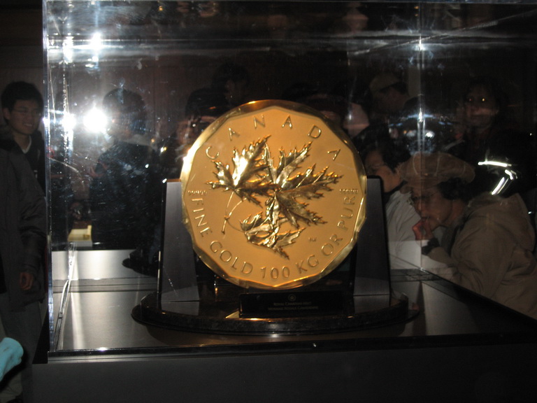 Other than the Olympic medals, the Mint pavilion has other cool stuff to see. There is a $1 million dollar coin made in pure gold in display. It looks like a giant loonie except the face value has 6 more zeros after the one. We can also lift up 400oz gold bar. It is exactly like the gold bars I always see in those bank robbery movies. I can feel how much half million dollars worth of pure gold weight. It’s very heavy. I had never hold something such valuable with my hand. Too bad that the gold bar is chained and guarded by armed policemen. I really want to take it home.
