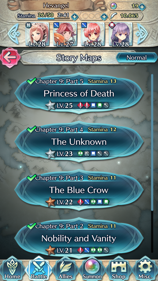 我很懷疑網上那些所謂攻略,到底有沒有直正玩過遊戲,還是只是把二手資料左抄右抄,把《火炎》當轉珠來講攻略。不要迷信五星卡,五星卡同四星卡的分別,不過就是多兩三點能力,只有約兩級level的差異。在遊戲上半段我甚至只那四張兩星開局卡,把寶石全投入去買城堡,每個角色可以獲取雙倍經驗值,升級冇難度。去到第九章之前,我的主力部隊完全不用去練功,過關拿到的經驗值剛好可以打上去。練功關主要給新卡升level,追上主力部隊的level。角色如何賺取經驗值有別一般RPG,角色只要參戰就自動有經驗值。《火紋》必須要攻擊敵人才可以獲取經驗,殺敵一擊獲取特別多的經驗。經驗值多寡視乎敵我level差距,若level差太多完全沒有經驗值。最重要一點是如果角色死掉,那個角色就完全沒有經驗值。如果那一局只有高level角色存活下來的慘勝,那基本上經驗值沒有進賬。到了中段以後,主力部隊要至少有九至十人,星數不拘,要有齊所有顏色屬性,遠攻,鐵壁,飛騎,魔法使,每一關都轉組合以最佳剋敵陣形應戰。